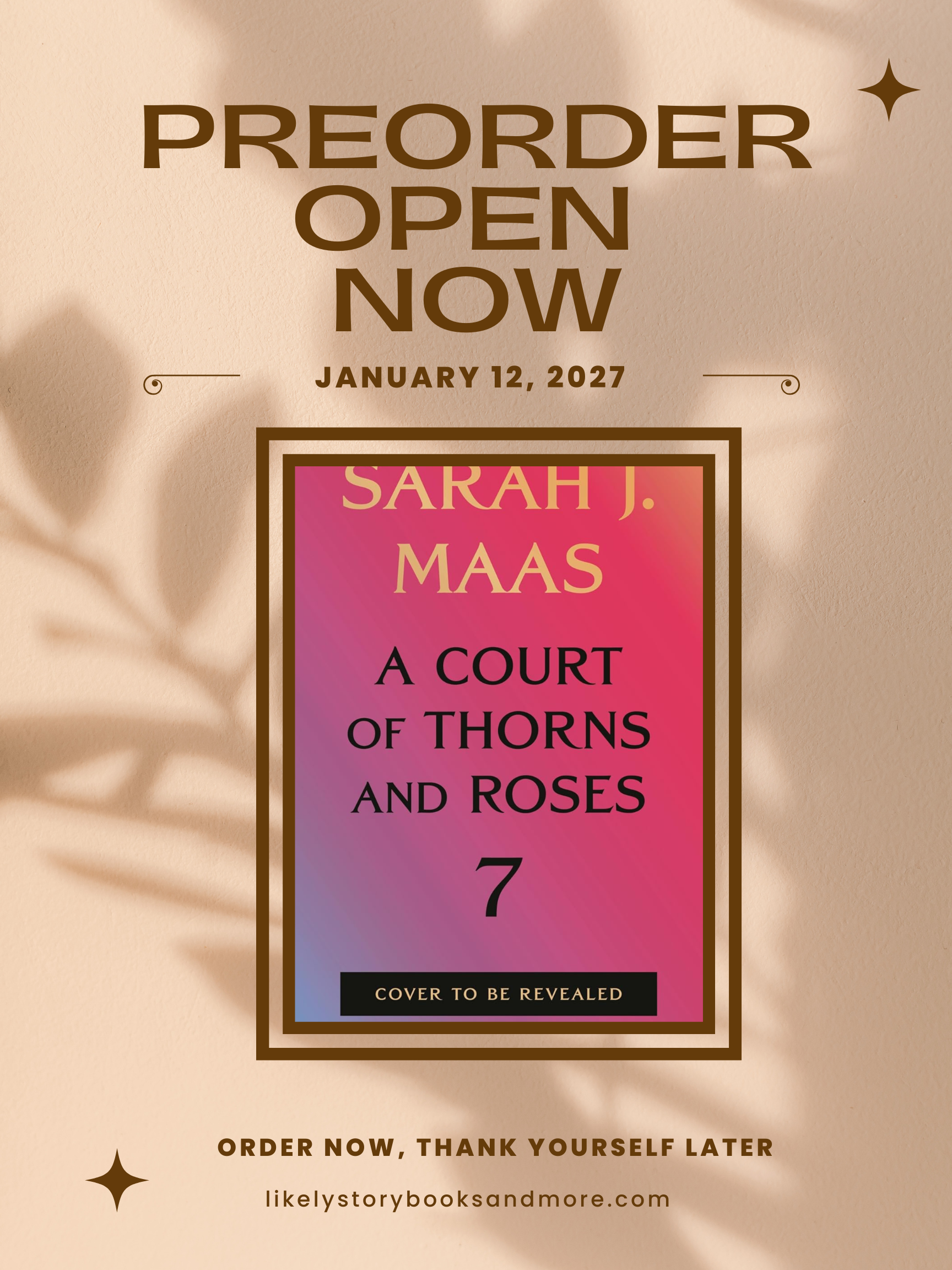 Preorders › Preorder: ACOTAR Book 7 Image 1 of 1 Preorder: ACOTAR Book 7 $32.00 Release date January 12, 2027 Add To Cart Added! Release date January 12, 2027